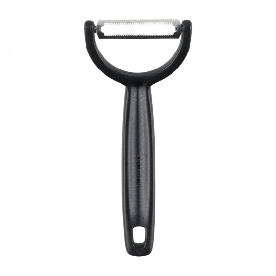 Obieraczka do warzyw Victorinox Ypso 6.0963.3 to profesjonalna obieraczka pozioma z podwójnym, ząbkowanym ostrzem, przeznaczona do dokładnego usuwania skórki z warzyw i owoców. Umożliwia szybkie przygotowanie produktów takich jak ogórki, marchew, ziemniaki, cukinia czy pomidory, bez uszkadzania ich struktury.
